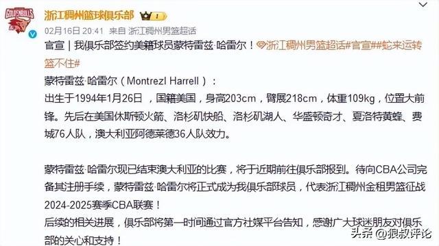 北京时间9月22日,根据外媒ESPN报道,本来与哈雷尔续约的澳洲NBL球队阿德莱德36人,因担忧哈雷尔在CBA的兴奋剂违规情况,选择与他分道扬镳。