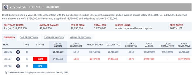 大洛的合同是两年约1800万,本赛季年薪为875万美元,下赛季918万美元。