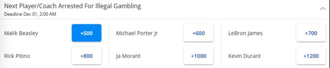 北京时间10月26日,NBA版本的“反赌风暴”仍是舆论的焦点,下一位被逮捕的NBA人员会是谁?已经有相关赔率开出,马利克-比斯利成为头号热门,湖人球星詹姆斯和火箭新援杜兰特也都排名