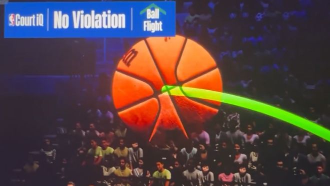 哈登在第一加时最后1分半钟投进了两记关键三分,且两次都是在落后情况,可惜最后一攻被加福德封盖——此处感叹下,科技进步实在太大,NBA的回放技术(Court IQ)居然连球的轨迹都能画出来,神奇。