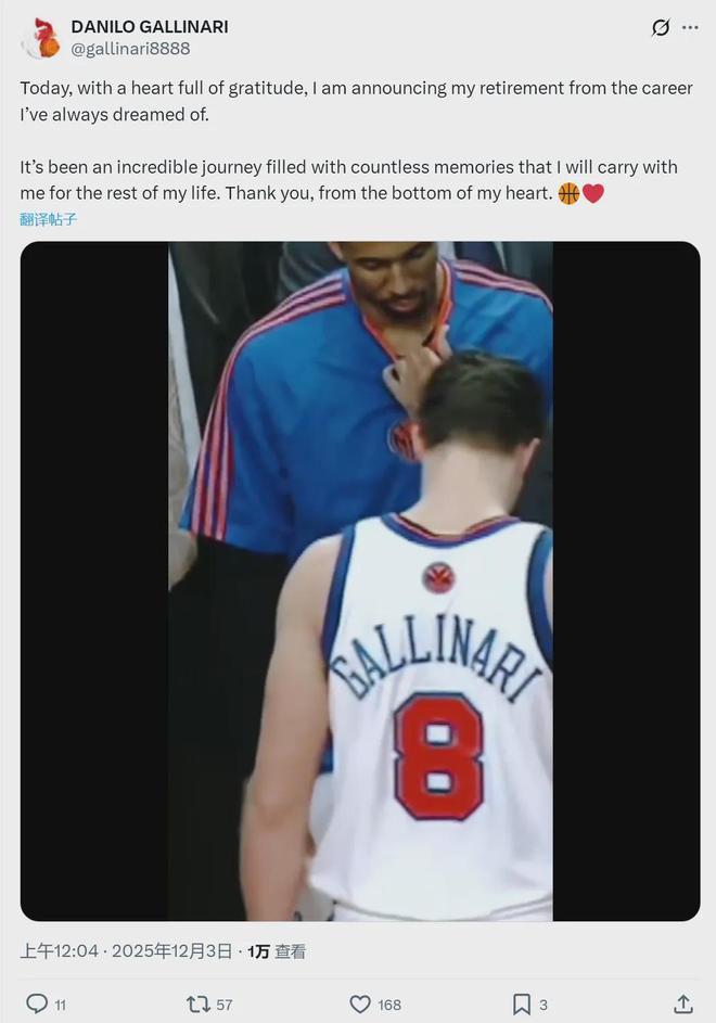 北京时间12月3日凌晨,“意大利炮”达尼罗-加里纳利宣布正式退役,结束21年篮球生涯:“今天,我怀着无比感恩的心情宣布,从我一直以来梦寐以求的职业中退役。这是一段不可思议的旅程