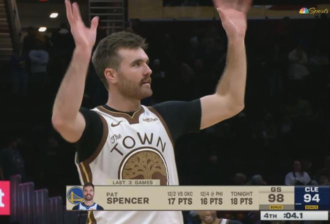 当帕特-斯潘塞打进关键球后朝着克利夫兰的球迷忘情怒吼,这位29岁的双向合同球员在这座对于金州人来说印象深刻的球馆书写下属于自己的传奇故事。