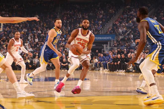 中场休息回来,库里与穆迪接连得分,引领勇士逐步扩大78-67领先11分优势,尼克斯连追5分。勇士内外开花一波11-4攻势,已经扩大89-76领先13分优势,麦克布莱德与沙梅特各中一记三分追分。勇士继续扩大两位数领先优势,勇士单节37-28净胜9分,三节结束勇士扩大99-87领先尼克斯。前三节比赛,尼克斯三分28中11,布里奇斯21分与唐斯16+13,引领5人得分上双;勇士三分33中16,库里19分5助攻、巴特勒23+8+4与穆迪7记三分21分。