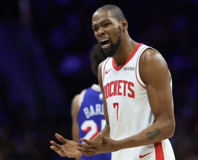 爆大冷!火箭裁判帮忙仍输球:杜兰特36分8失误,恩比德打爆申京
