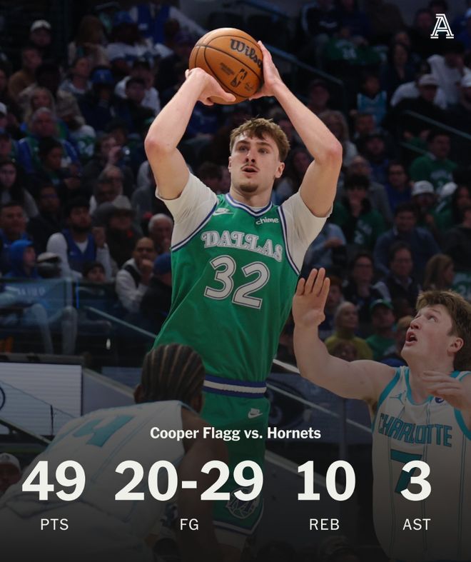 7.弗拉格49分打破独行侠队史新秀得分纪录;