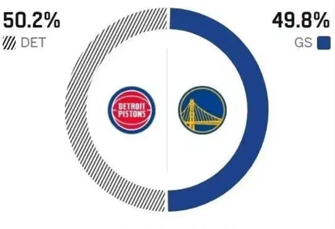 综合两队现状,活塞整体实力明显更胜一筹,攻守体系相对均衡。反观勇士,如今几乎只剩库里一人能稳定输出,一旦被对手重点盯防便难以破局,其他球员的表现也缺乏稳定性。此役,活塞有望凭借更强的整体实力与更稳固的防守,拿下比赛胜利。不过,ESPN的数据模型依旧看好主场作战的勇士能打出惊艳的外线投射力,给出49.8%的胜率。此役,勇士的首发为穆迪、格林、霍福德、波杰姆斯基、库里,活塞首发坎安宁、罗宾逊、杜伦、哈里斯、奥萨尔。
