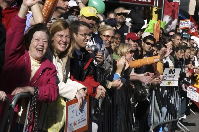 Letter from a Marathon DropoutBy Celeste Ballard 一张观众为马拉松跑者加油的照片。摄影:PG/MAGNUM终于到了……马拉松参赛日!我真的很幸运,有像你们这样的朋友和家人一路支