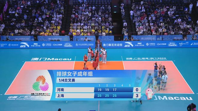 北京时间11月17日,第十五届全运会排球项目迎来女排成年组1/4交叉赛的较量,以B组第三名晋级淘汰赛的上海队面对拥有朱婷的河南队。最终,上海女排连下三城,以3-0(25-19/25-19/25-1