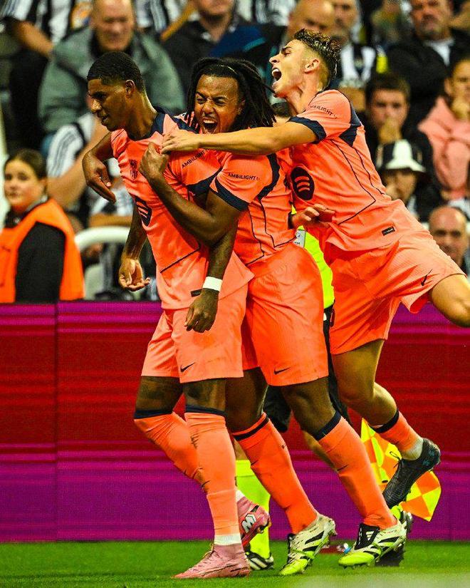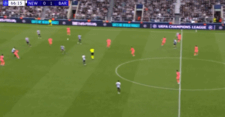 开场第7分钟,吉马良斯肋部直塞,哈维-巴恩斯形成单刀打门被出击的霍安-加西亚扑出;第9分钟,拉什福德左路突破低射打门,皮球稍稍偏出;第23分钟,埃兰加右路速度优势高速推进组织反击横传门前,后点包抄到位的哈维-巴恩斯推射,霍安-加西亚门线前神奇救险。在纽卡顽强地防守以及缺少亚马尔的单兵爆点,巴萨上半场真正形成的威胁并不大。