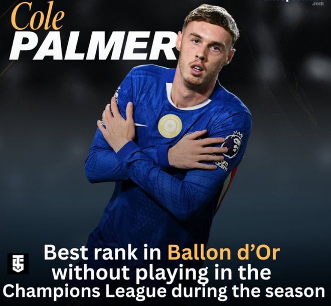 在未参加该赛季欧洲冠军联赛的情况下,帕尔默在金球奖评选中位列第8名,这一成绩打破了内马尔此前保持的纪录。