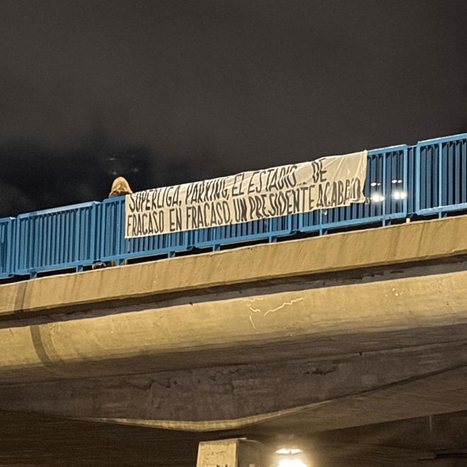 北京时间1月17日,来自《科贝电台》的报道,因为不满皇马近期战绩低迷和仓促换帅的决定,不少皇马球迷在本轮西甲主场与莱万特比赛的前一晚,在马德里多处桥梁上拉出了针对俱乐部主