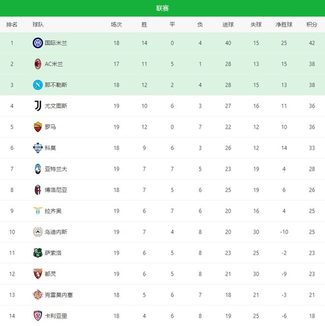 20!22!意甲最新积分榜:国米稳居榜首,那不勒斯拉齐奥齐丢分