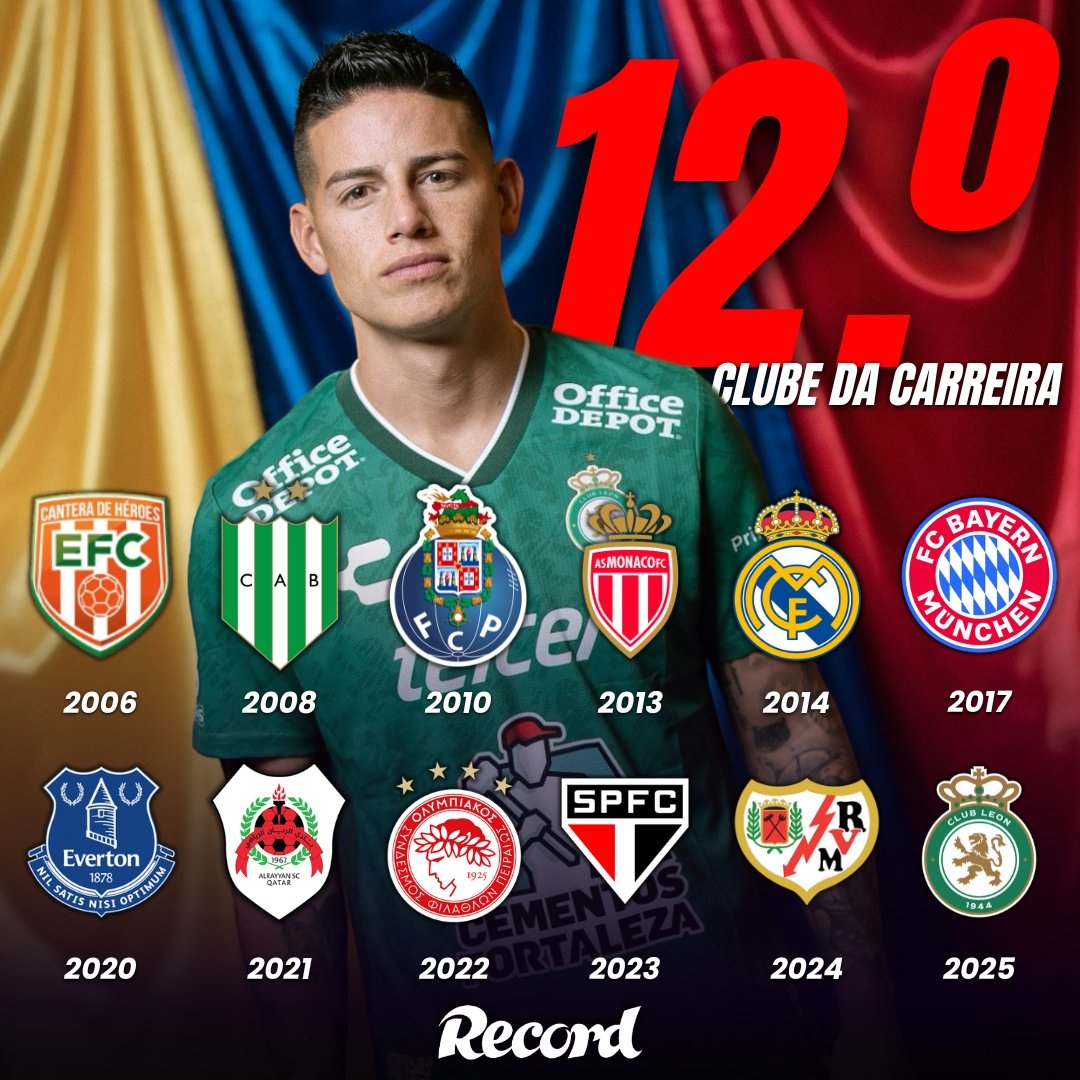J罗职业生涯效力球队:恩维加多 2006-08班菲尔德 2008-10波尔图 2010-13摩纳哥 2013-14皇马 2014-20拜仁 2017-19埃弗顿 2020-21赖扬 2021-22奥林匹亚科斯 2022-23圣保罗 2023
