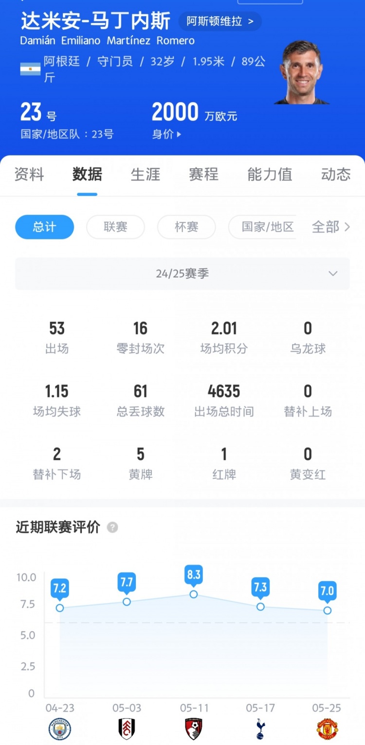 “而且马丁内斯是一位非常有趣的门将,大多数门将都是这样。他性格张扬,对自己的掌控范围要求极高,而且他确实拥有足够强的掌控力。一支球队需要这样的门将,在自己的区域内有强大的气场和控制力,马丁内斯毫无疑问就是这样的守门员。”