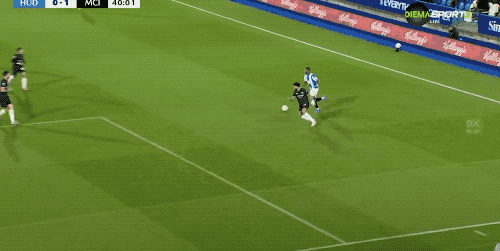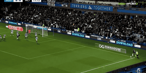 第12分钟,曼城获得角球,小将穆卡萨顶出反弹球,没能威胁到哈德斯菲尔德的球门。
