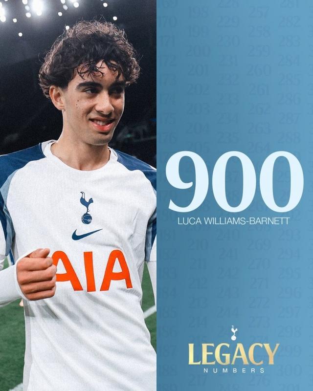 据官方数据,巴内特成为了第900位代表热刺出场的球员。