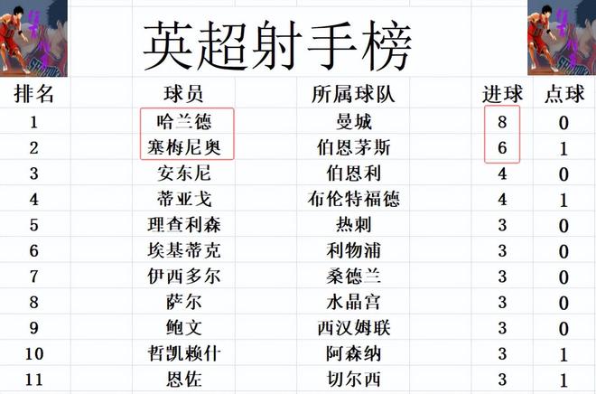 英超最新积分战报神锋造3球紧追哈兰德伯恩茅斯超阿森纳升至第2