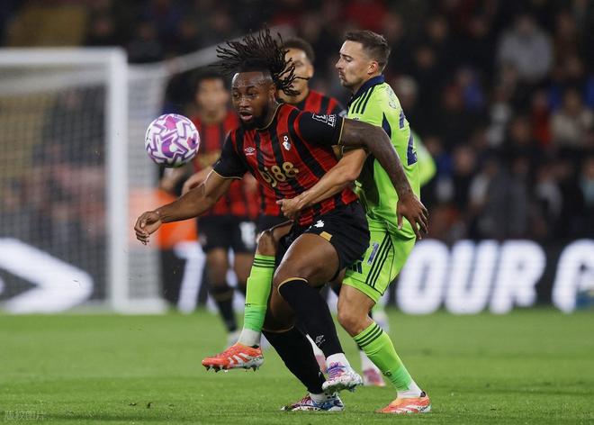 伯恩茅斯本赛季首轮输给卫冕冠军利物浦后很快调整过来,之后夺得一波3连胜,近两轮连续战平纽卡斯尔和利兹联。连胜势头被摁下。今天回到主场对阵富勒姆,伯恩茅斯还是踢得很艰难,开场后两队势均力敌踢得很沉闷,第9分钟,伯恩茅斯前场左侧高位逼抢,亚当斯禁区前沿断球后大力低射,皮球稍稍偏出门柱。第38分钟,富勒姆右路快速反击,威尔逊杀入禁区倒三角挑传中路,卡斯塔涅点球点前获得不错机会,只是他球没有停好被防守球员解围破坏。