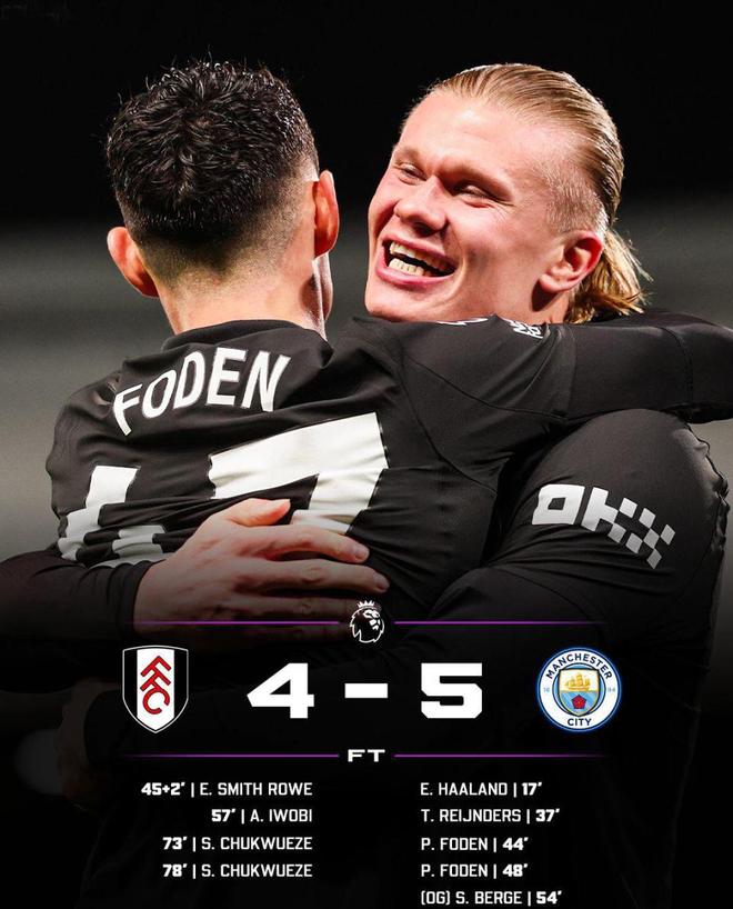 富勒姆最近的状态肉眼可见地回暖,上一轮刚刚击败强敌,最近四轮拿到三场胜利,从降级泥潭一路往上爬,如今稳居第15位,只落后上半区两分,有点当年巨人杀手的感觉。曼城方面,瓜迪奥拉的球队暂列第二,8胜1平4负拿到25分,已经追到距离阿森纳只差5分。蓝月亮依旧拥有英超最恐怖的攻击线,联赛至今已经轰入27球,哈兰德包办了其中14球,领跑英超射手榜。