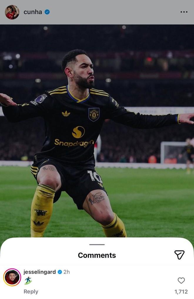 赛后库尼亚在社媒晒出了自己的庆祝照片,林加德也在社媒积极互动,他回复了♂️的表情包。