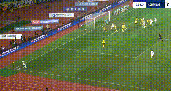 第67分钟,罗慕洛角球开到禁区,费利佩头球攻门顶进,成都蓉城扳回1球。