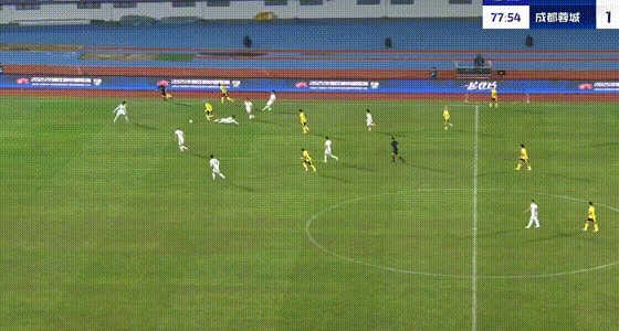第74分钟,严鼎皓射门被挡出,成都蓉城错失良机。