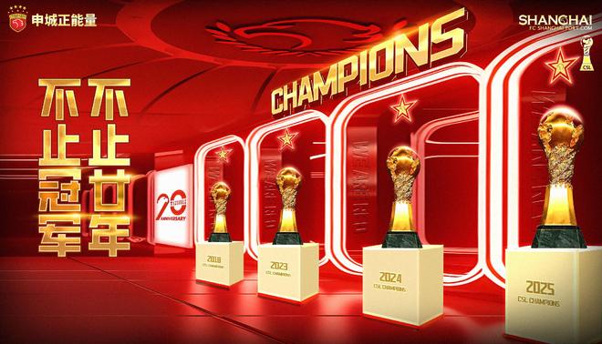 中超联赛第30轮收官战,上海海港队客场奏凯,锁定2025赛季中超联赛冠军,这是俱乐部连续第三年捧起火神杯,队徽之上,从此闪耀第四颗冠军之星!